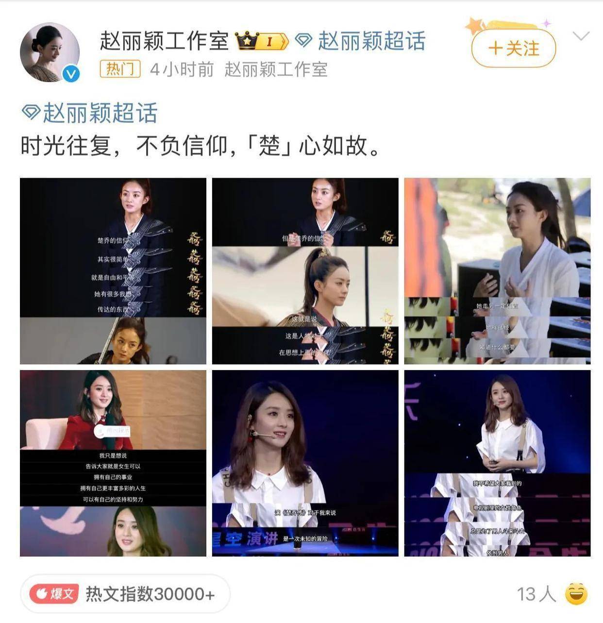 4月10日下午五点,赵丽颖工作室发了一条微博。 内容很简单,是九年前《楚乔传》播出期间,赵丽颖的一段幕后采访截图。 配文只有十二个字:“时光往复,不负信仰,「楚」心如故。”